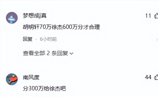 所以有球迷建议到让胡明轩分徐杰300万,亦或是连根交换一下薪资才合理。